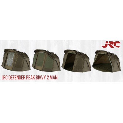 Cort JRC Double Carp - Defender Peak Bivvy 2 Man - Cortul JRC - Defender Peak Bivvy 2 Man este fabricat din nailon 100% 210D, care susține 5000 mm de presiune hidrostatică. Materialul exterior asigură o protecție excelentă împotriva ploii. Cortul pentru crap este ideal pentru pescarul de crap modern, incapator, rapid de asamblat, puternic si foarte stabil. Partea principală a cortului este formată din trei nervuri de rigidizare.