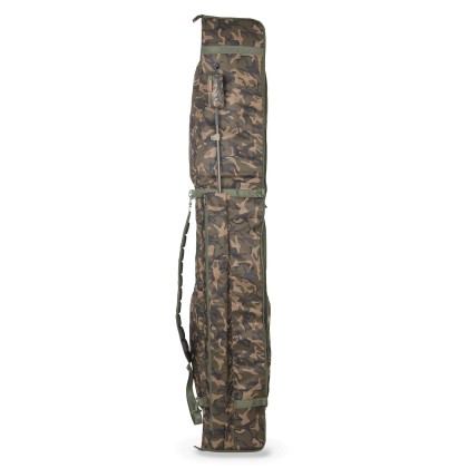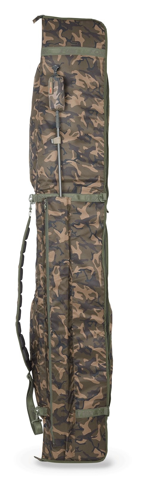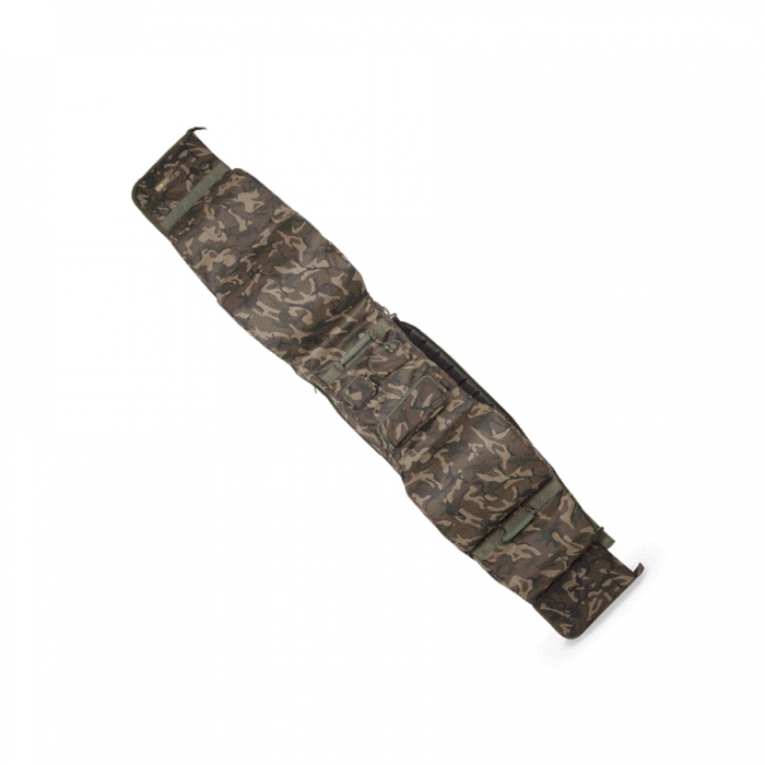 - Комель удилища располагается внутри набитых кармашков с обеих сторон, вершинка фиксируется ремнем на липучке