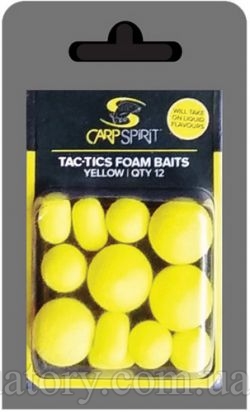 CARP SPIRIT TAC TIC FOAM BAITS - Yellow - имитация плавающих бойлов и дамбелсов от французской компании "CARP SPIRIT". Невероятно универсальные и устойчивые к контактам с рыбой, изготовленные из ультра-плавучей пены высокой плотности. Подходят для оснасток типа "Chod", "Zig Rig", "Снеговик" и других. Для усиления привлекательности могут замачиваться в жидких ароматизаторах. Окрашены в желтый цвет. Поставляются в блистерной упаковке.